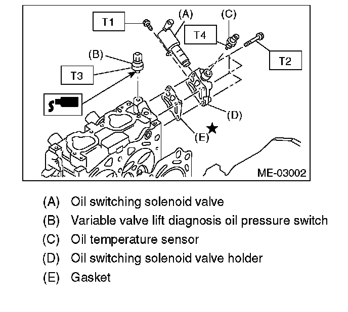 - Install the oil switching solenoid valve to the holder, then install it to the cylinder head.