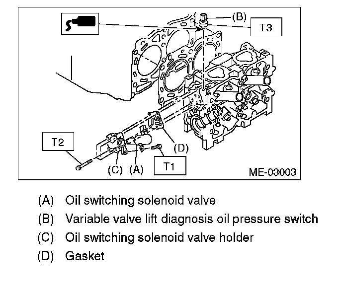 - Apply liquid gasket to variable valve lift diagnosis oil pressure switch threads.