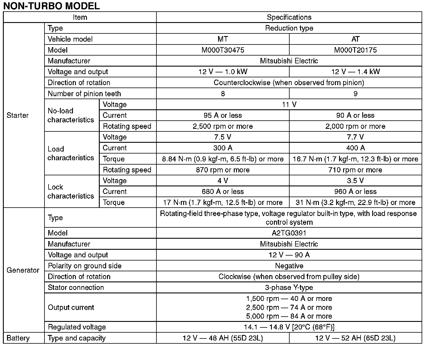 Electrical Specifications