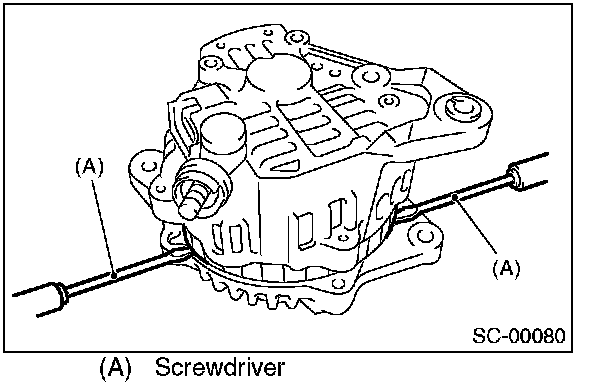 3. Insert the end of a flat tip screwdriver into the gap between stator core and front cover. Pry them apart to disassemble.