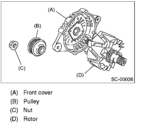 5. After re.assembling, manually turn the pulley to check that the rotor rotates smoothly.