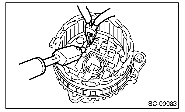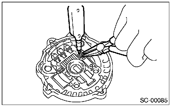 CAUTION: The rectifier is easily damaged by heat. Do not allow a 180 - 270 W soldering iron to contact the terminals for 5 seconds or more at a time.