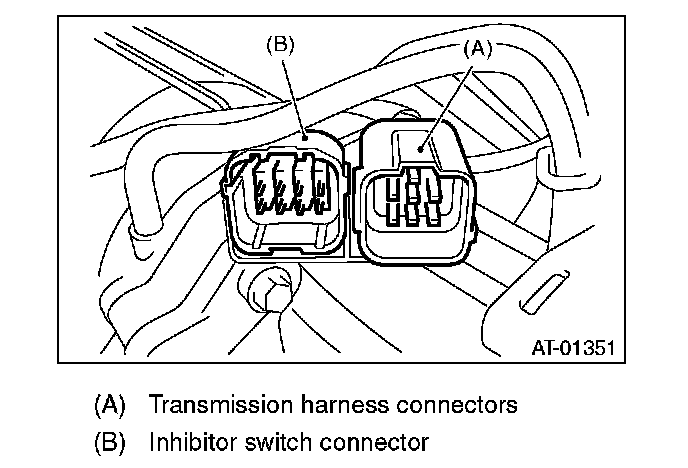 4) Lift up the lever on the rear side of transmission harness connector, and then remove it from the stay.