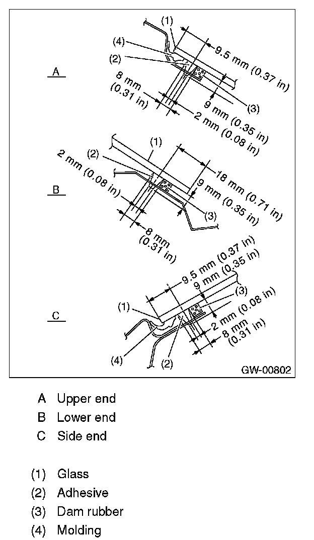 4. Install the glass in the same procedure as for windshield glass.