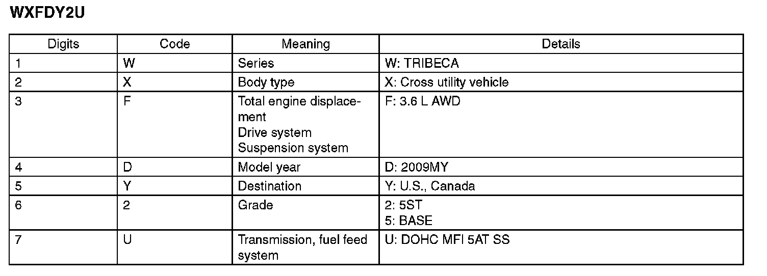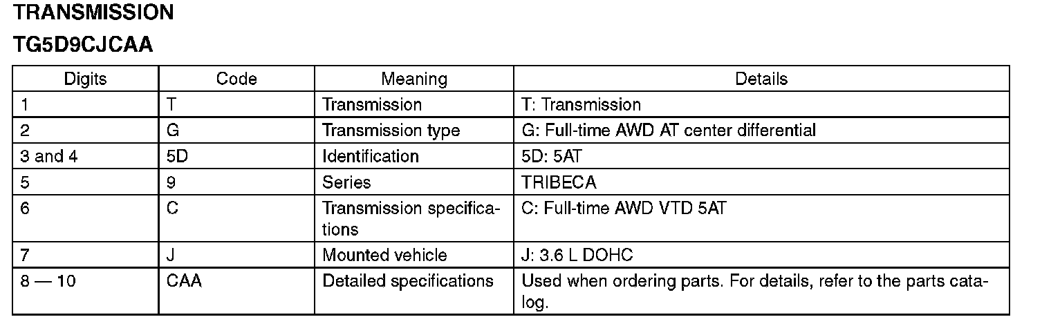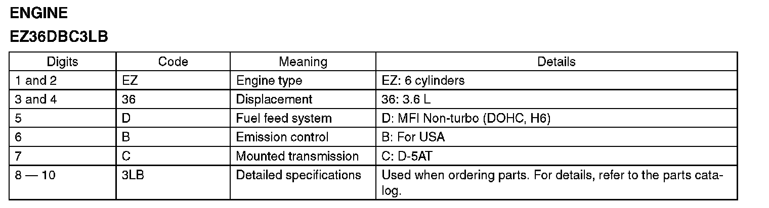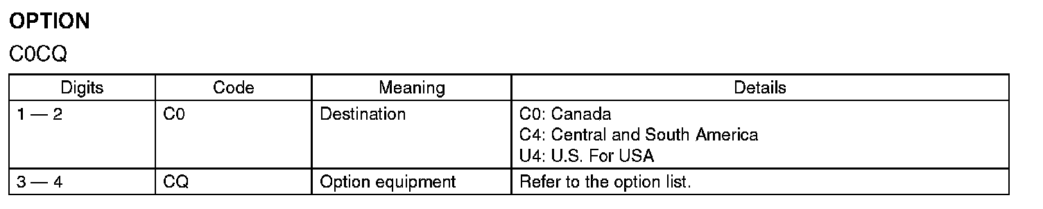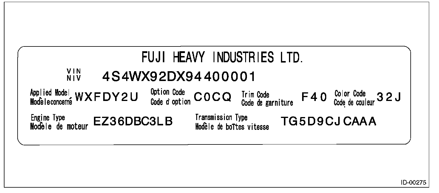 The model number label indicates the type, V.I.N., applied model, option code, trim code, engine type, transmission type and the exterior color code.