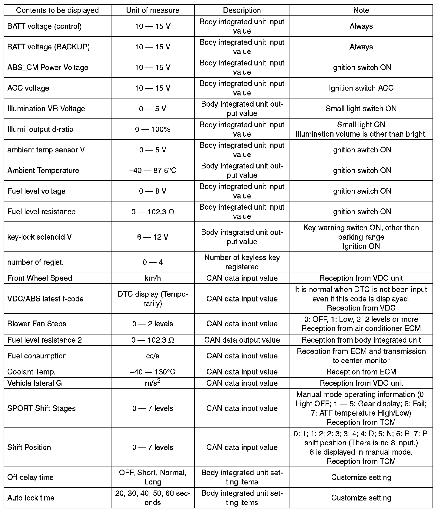 CAUTION: Body integrated unit is core of LAN system, and also can select the function of all vehicle system control. To perform normal operation of vehicle and diagnosis, the above settings must match the actual vehicle equipment.