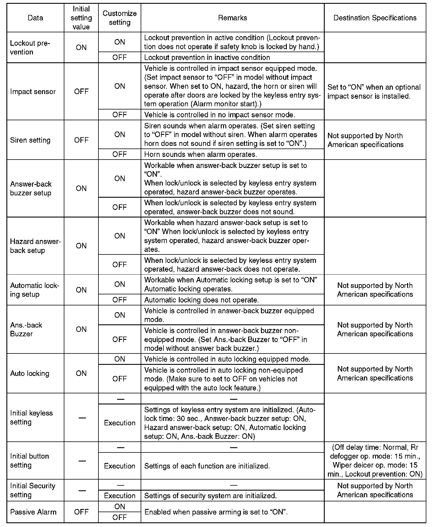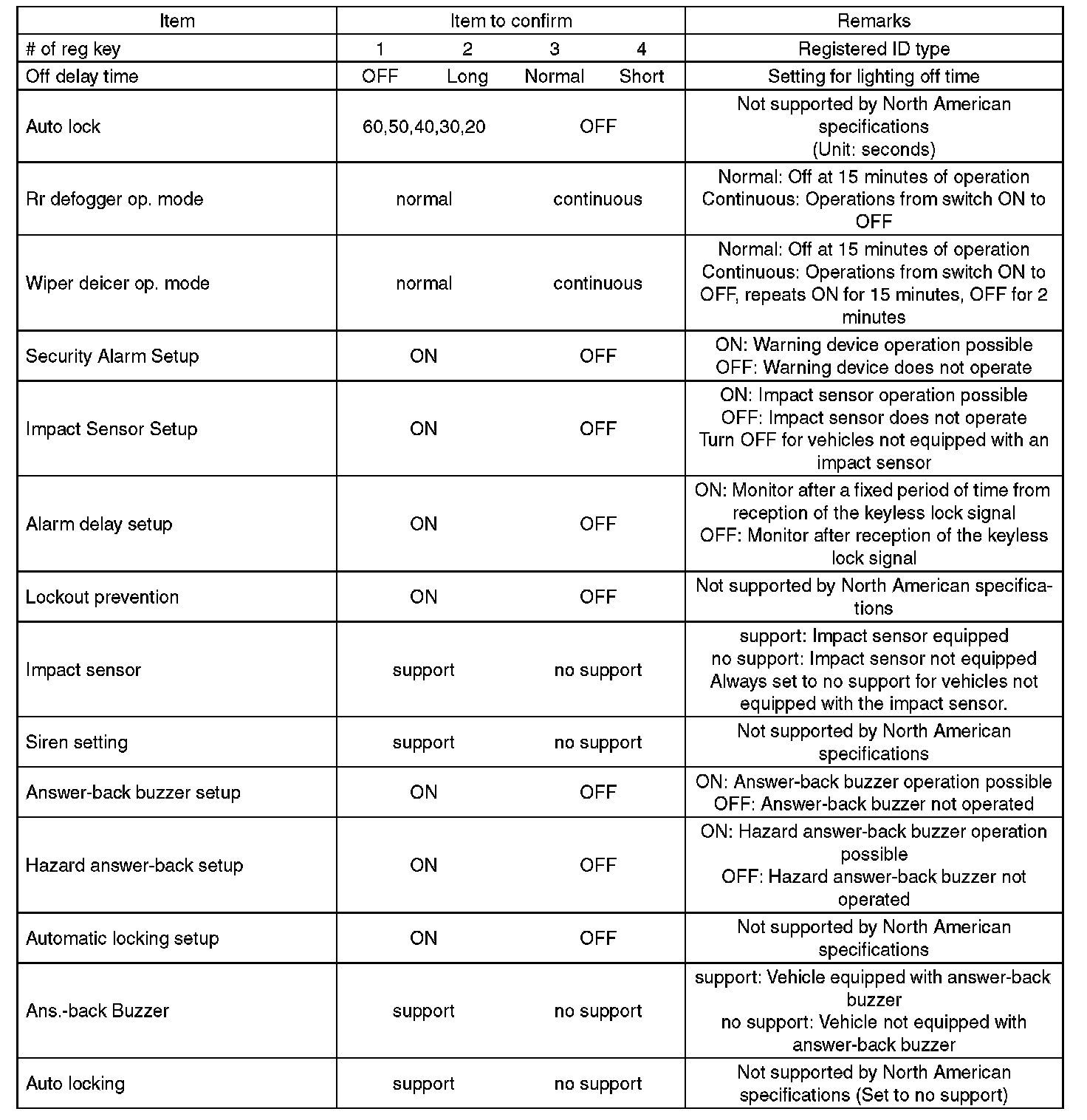 - Confirm key illumination does not blink or "Factory or Market setting" of body integrated unit registrations is "Market". If "Factory or Market setting" is set to "Factory", key illumination blinks when ignition key is turned ON to notify that the settings are unconfirmed.