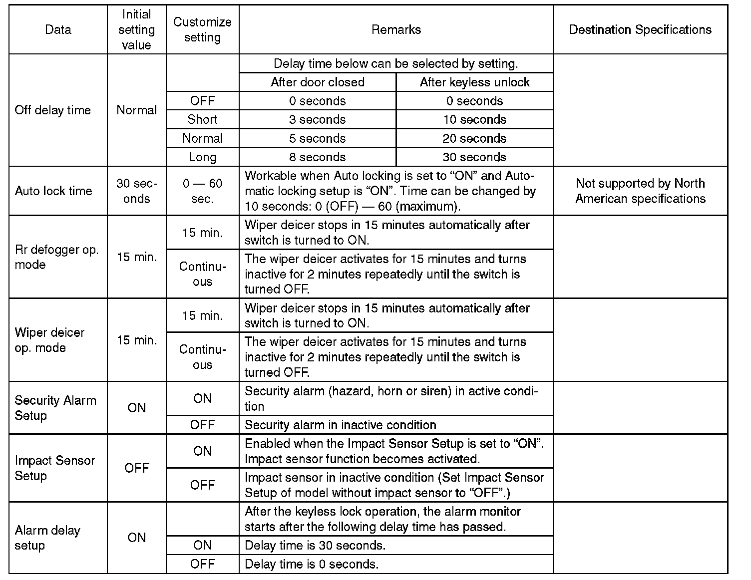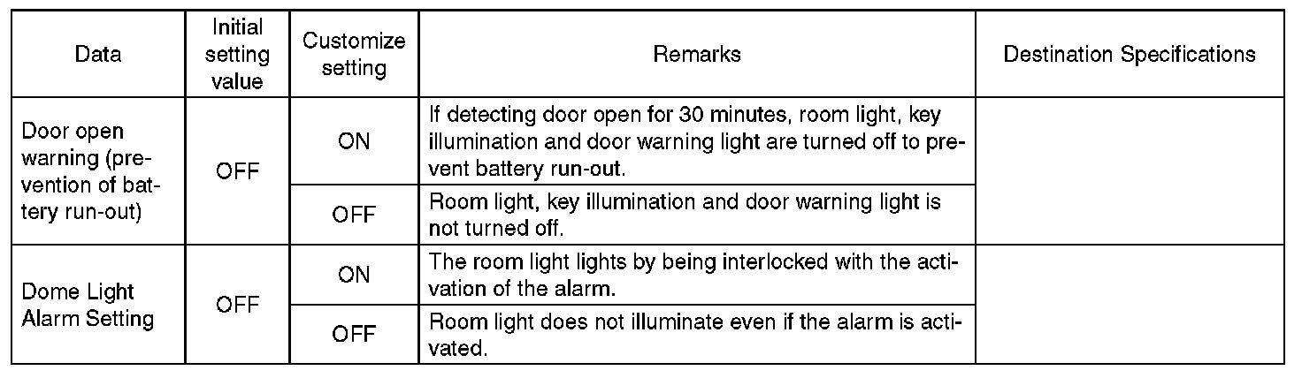 Each settings have been set. It can be recognized by key illumination coming on in concocting with room light and going off with ignition switch turned to ON.