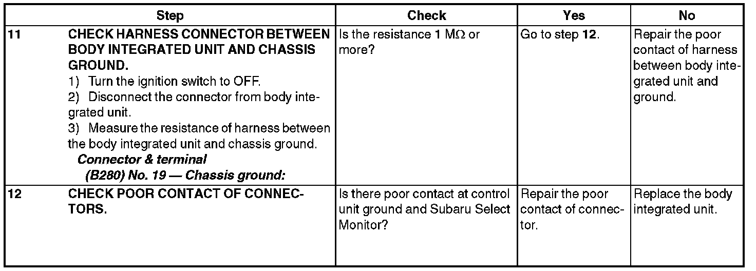 In order to check the body integrated unit function, inspect the body integrated unit and actuator using Subaru Select Monitor without operating switches.