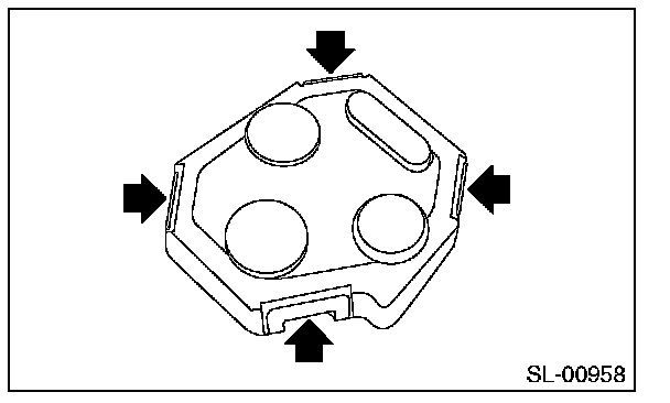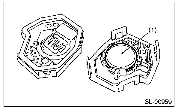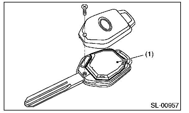 1. Disassemble the keyless transmitter, and take out the transmitter case (1).