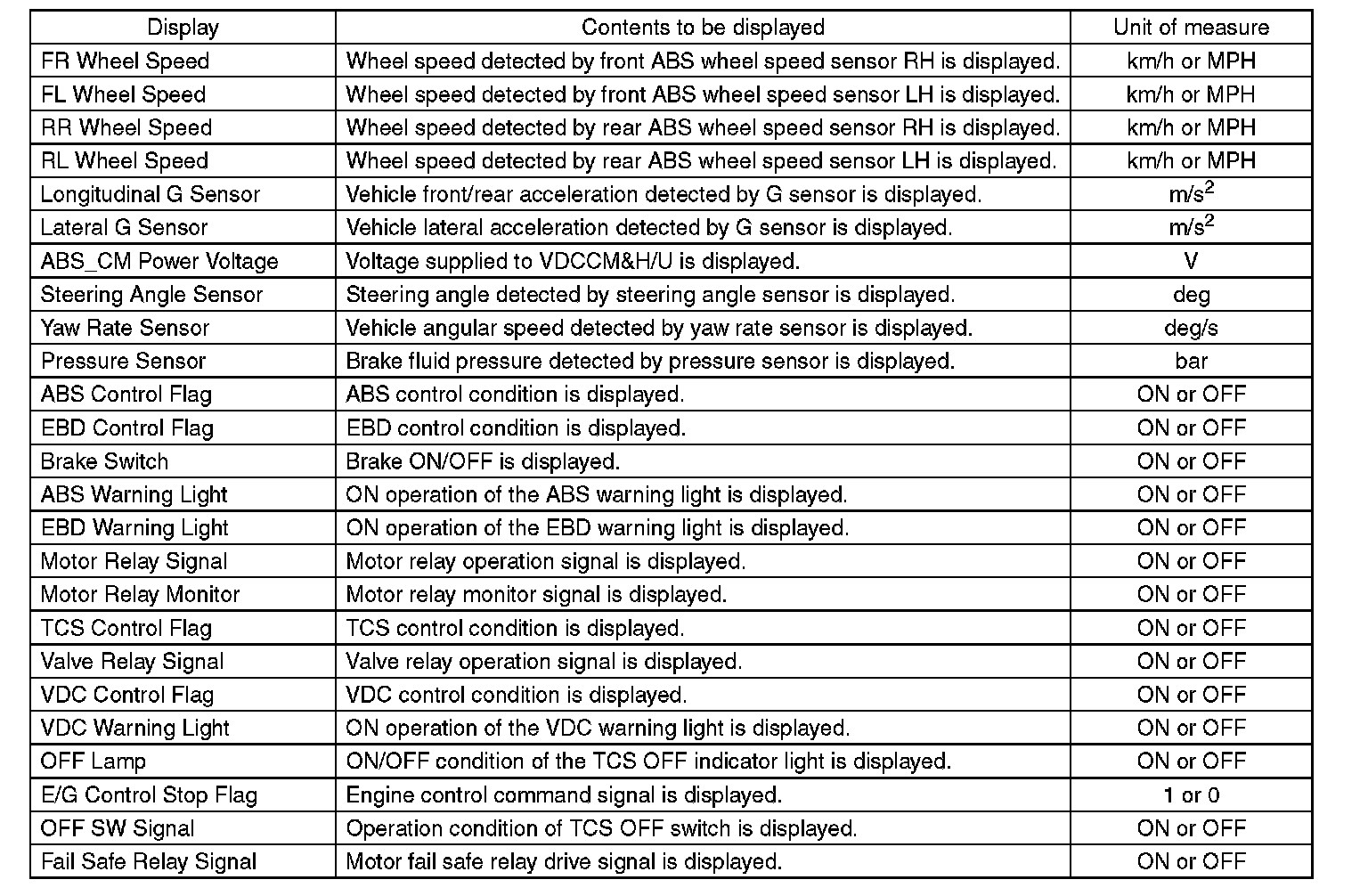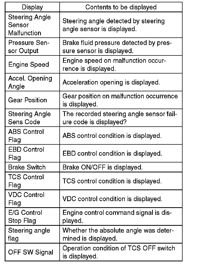 - Each time trouble occurs, the latest information is stored in the freeze frame data in memory.