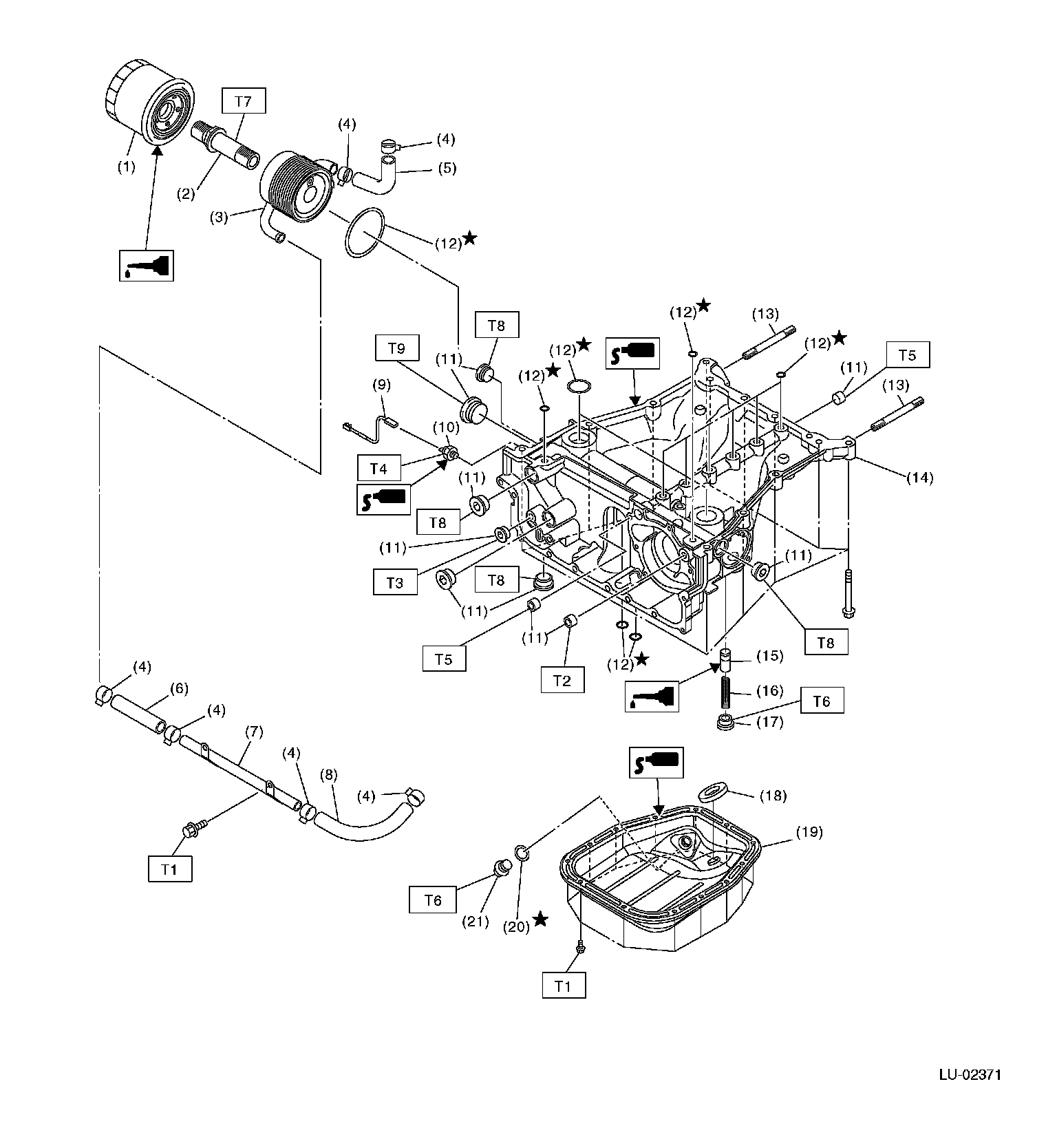 OIL PAN UPPER, OIL COOLER, OIL FILTER:
