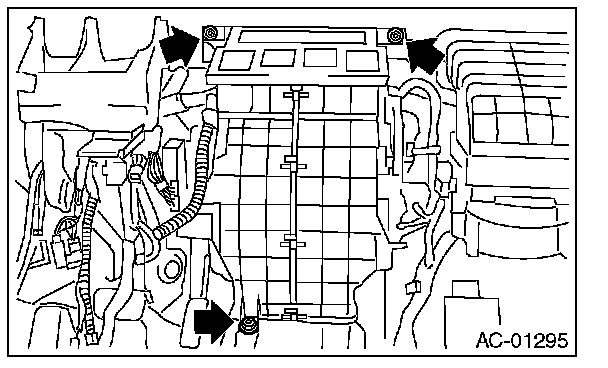 4. Remove the bolts securing expansion valve and pipe in engine compartment. Release the heater hose clamps in engine compartment to remove the hoses.