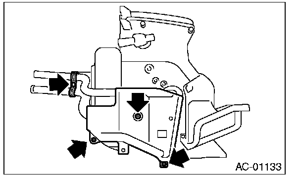4. Remove the screws and remove the heater core cover and pipe clamp.