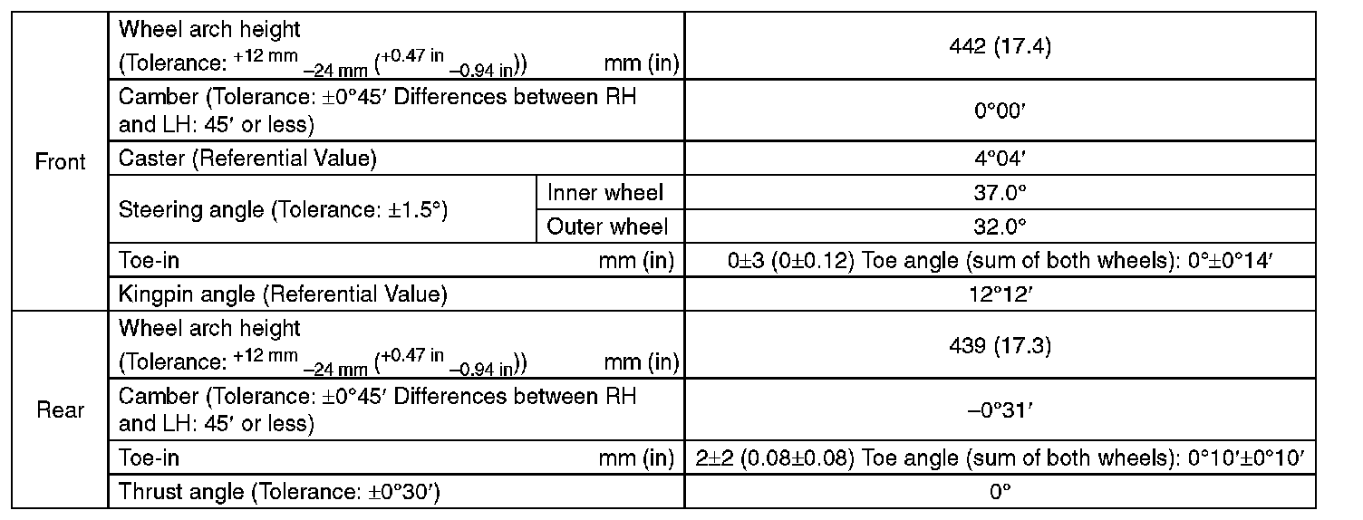 ^ Other items indicated in the specifications table cannot be adjusted. If other items exceed specifications, check the suspension parts and connections for deformation, and replace with new parts as required.