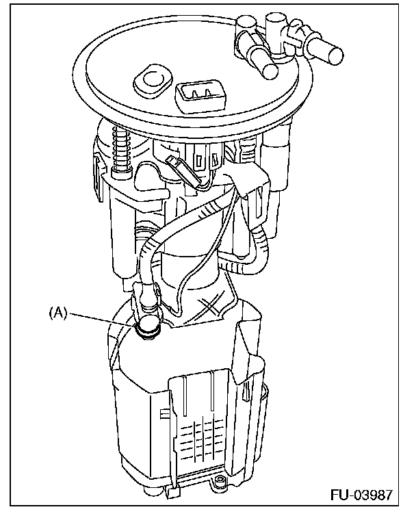 6. Attach O-ring (A) to the fuel filter assembly, and install the sub tank to the sub tank bracket assembly.