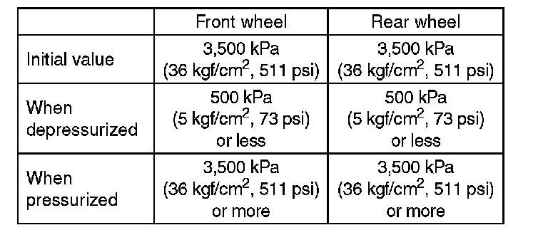 7) Read values indicated on the pressure gauge and check if the fluctuation of the values between decompression and compression meets specification. Depress the brake pedal and check that it is not abnormally hard, and tightness is normal.