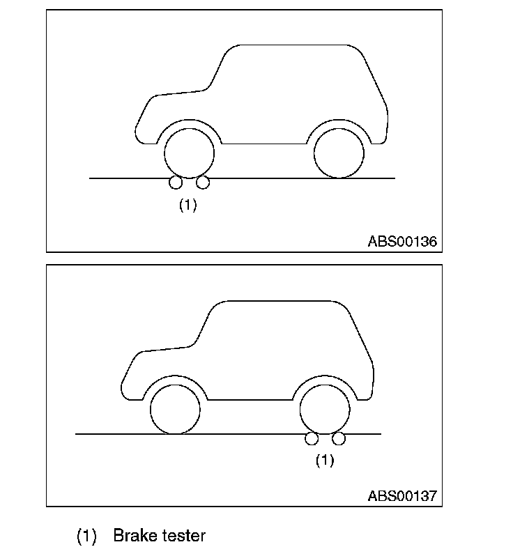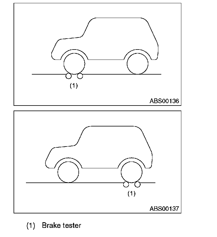 3) Set the front wheels or rear wheels on the brake tester and set the select lever position to the "N" range.