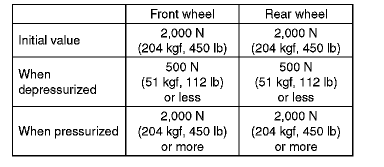 7) Read values indicated on the brake tester and check if the fluctuation of the values between decompression and compression meets specification.