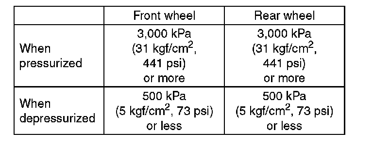 15) Read the values indicated on the pressure gauges and check if it is within specification. Depress the brake pedal and check that it is not abnormally hard, and tightness is normal.