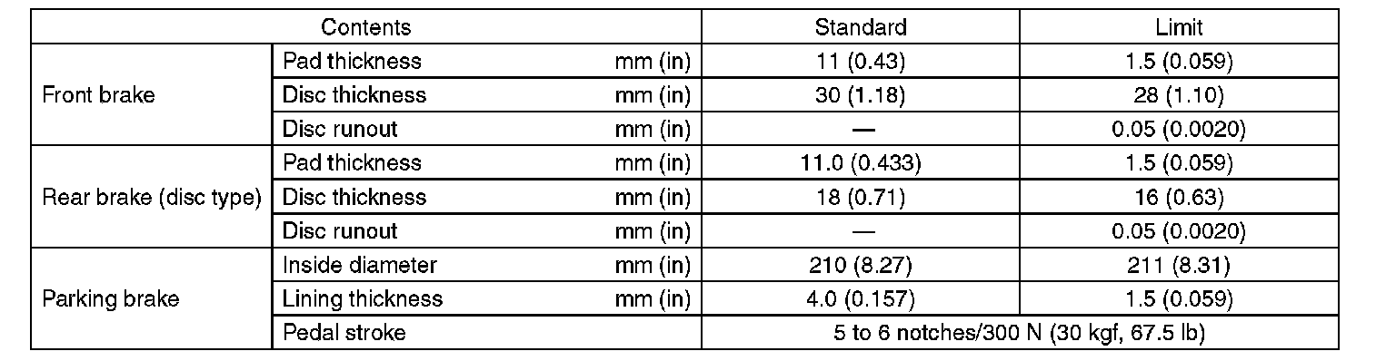Refer to "PB" section for parking brake specifications.