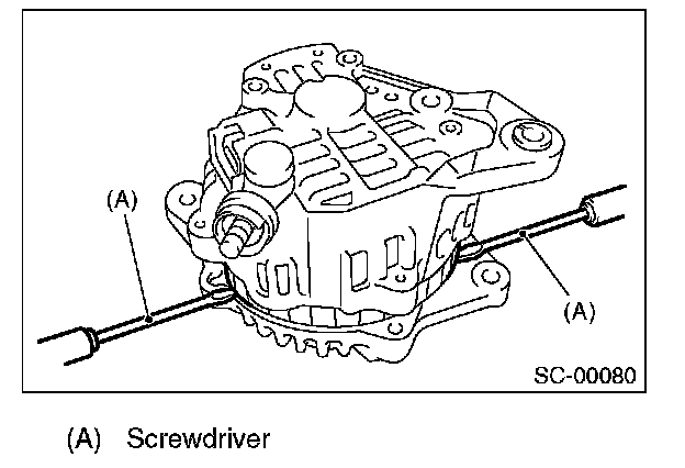 3. Then insert the tip of a flat tip screwdriver into the gap between stator core and front cover. Pry them apart to disassemble.