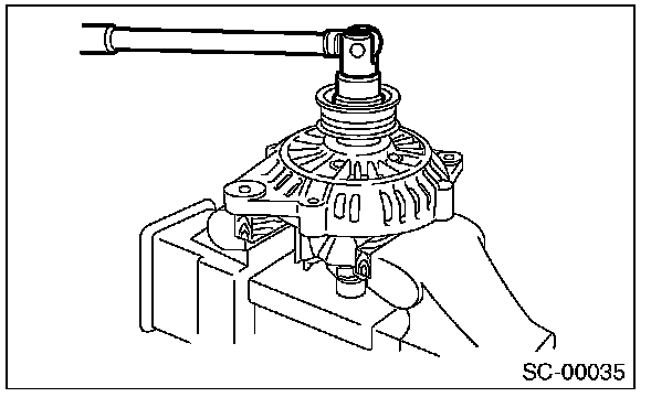 4. Hold the rotor with a vise and remove pulley nut.