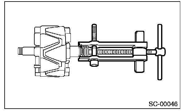 CAUTION: When holding the rotor with a vise, place aluminum plates or wooden pieces on the vise jaws to prevent rotor from damage.