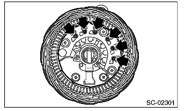 7. Remove six bolts between rectifier and stator coil, then remove the stator coil.