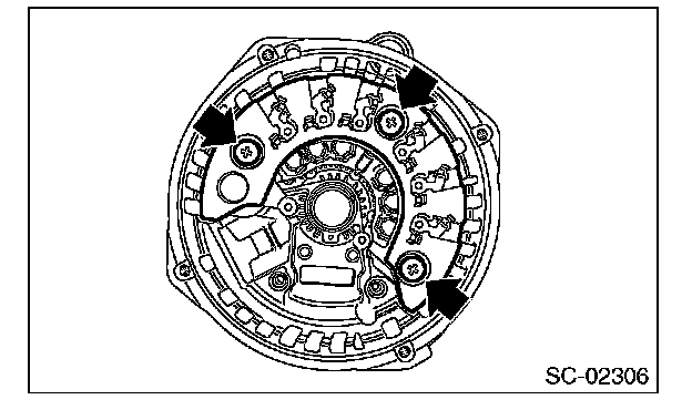 3. Remove the bolts which secure the rectifier, then remove the rectifier.