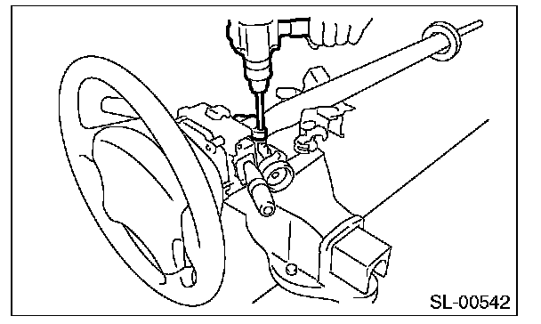 3. Secure the steering column in a vise. Remove the bolt with a drill.