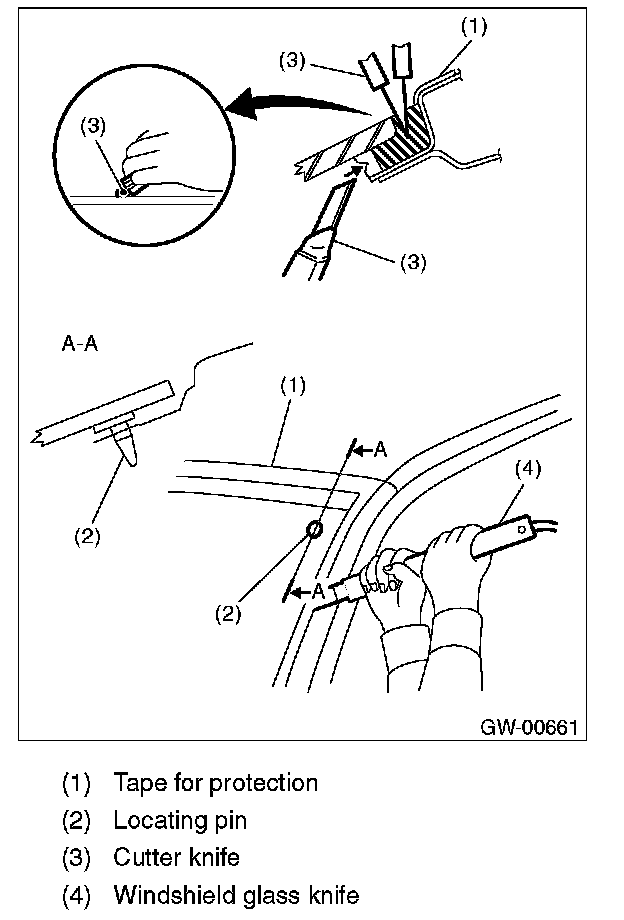 4. Tape the body side of the circumference of windshield glass for protection.