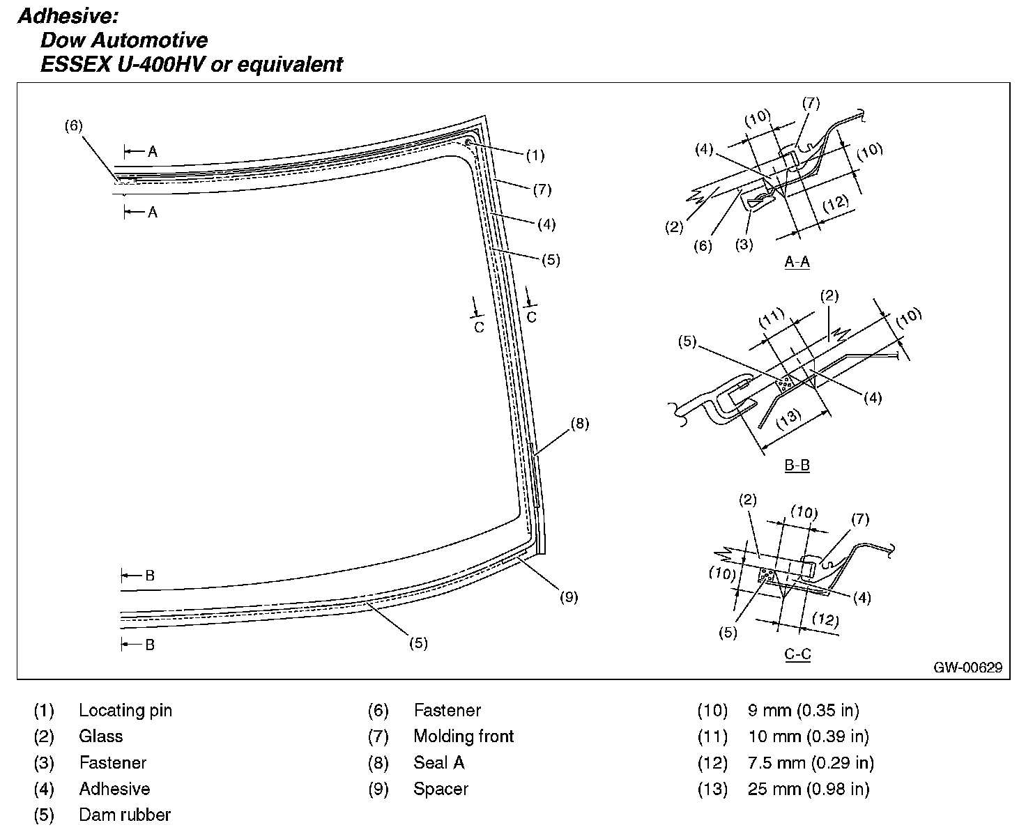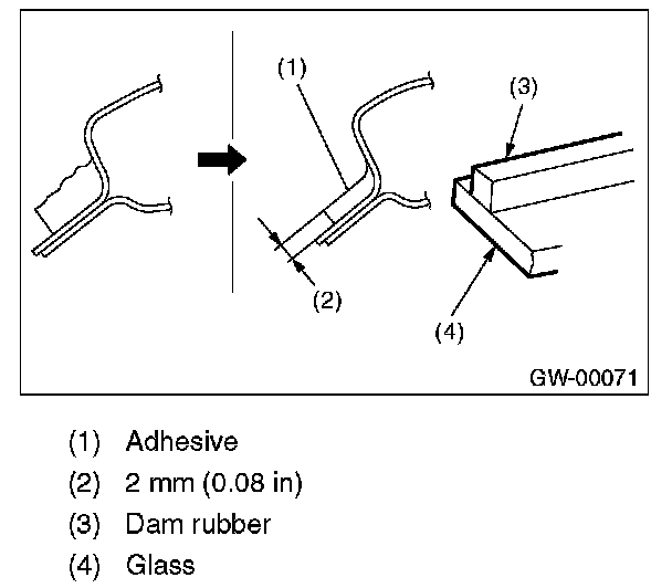 - For minimum drying time and vehicle standing time before driving after bonding, follow instructions or instruction manual from the adhesive manufacturer.