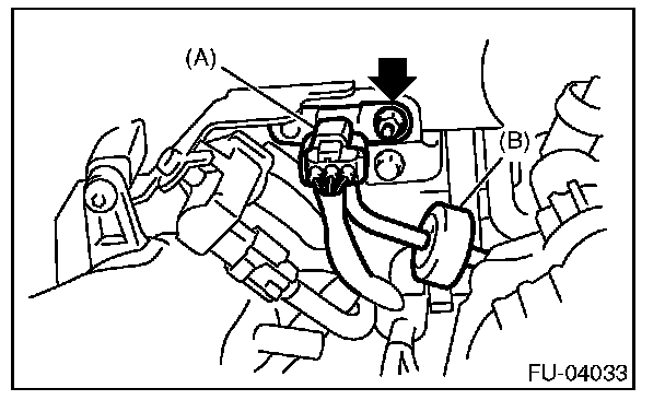 3. Disconnect the connector from manifold absolute pressure sensor (A), and remove the filter assembly (B) from intake manifold.