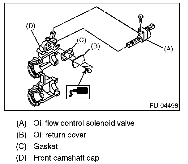 2. Apply liquid gasket to the two bolts which secure the oil return cover.