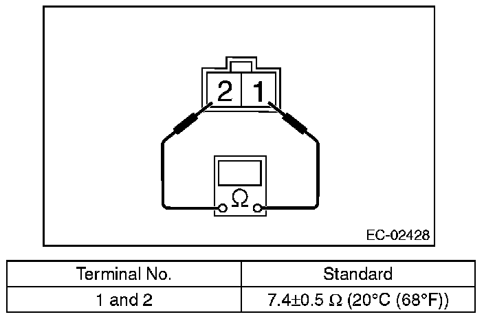 2. Measure the resistance between the oil flow control solenoid valve terminals.