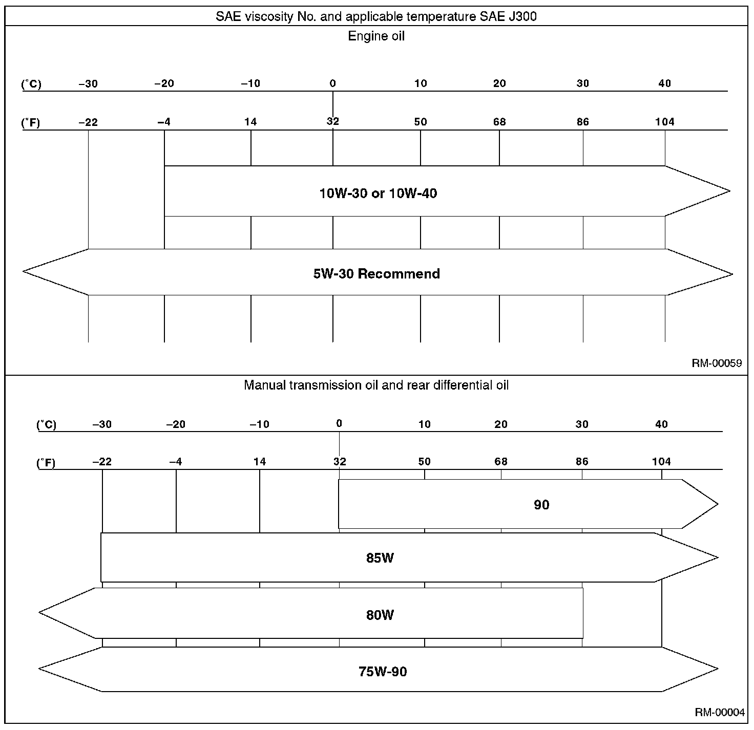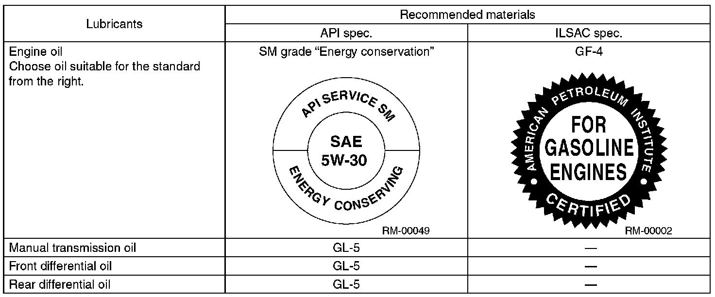 Use the lubricants shown in the table below, or equivalent. See the table below to choose the correct SAE viscosity.