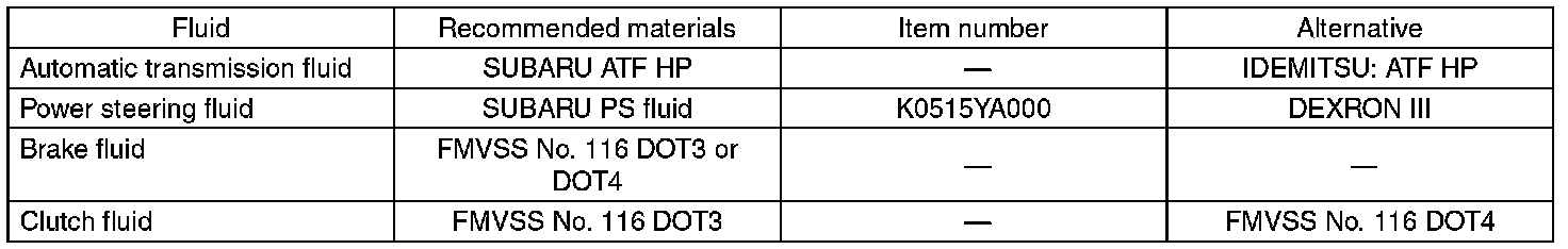 Use the fluids specified in the table below. Do not mix two different kinds or makes of fluid.