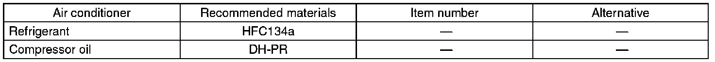 Standard air conditioners on Subaru vehicles use HFC134a refrigerant. Do not mix it with other refrigerants. Also, do not use any air compressor oil except for DH-PR.