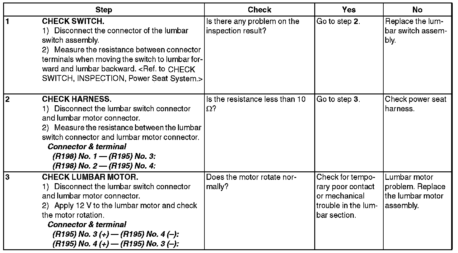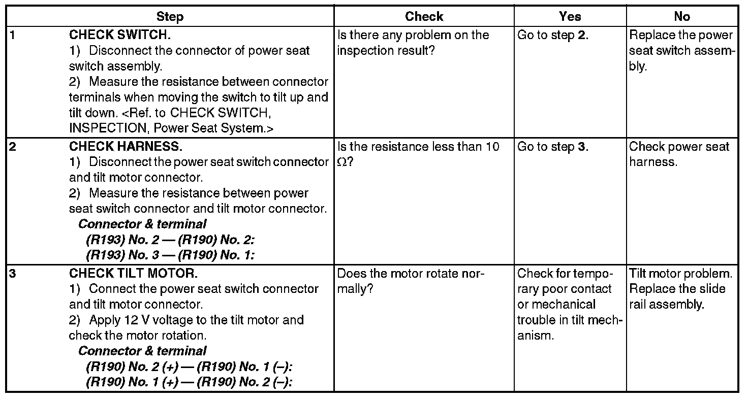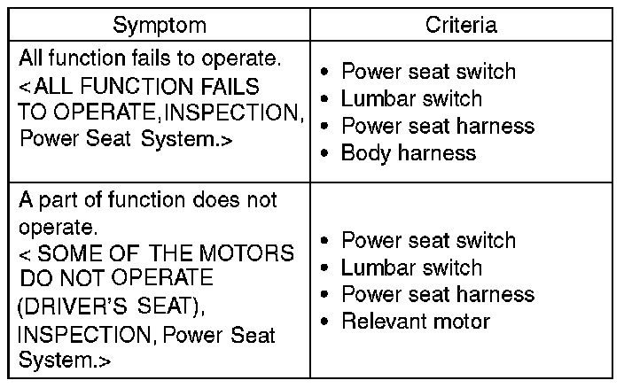 POWER SEAT SYSTEMINSPECTION