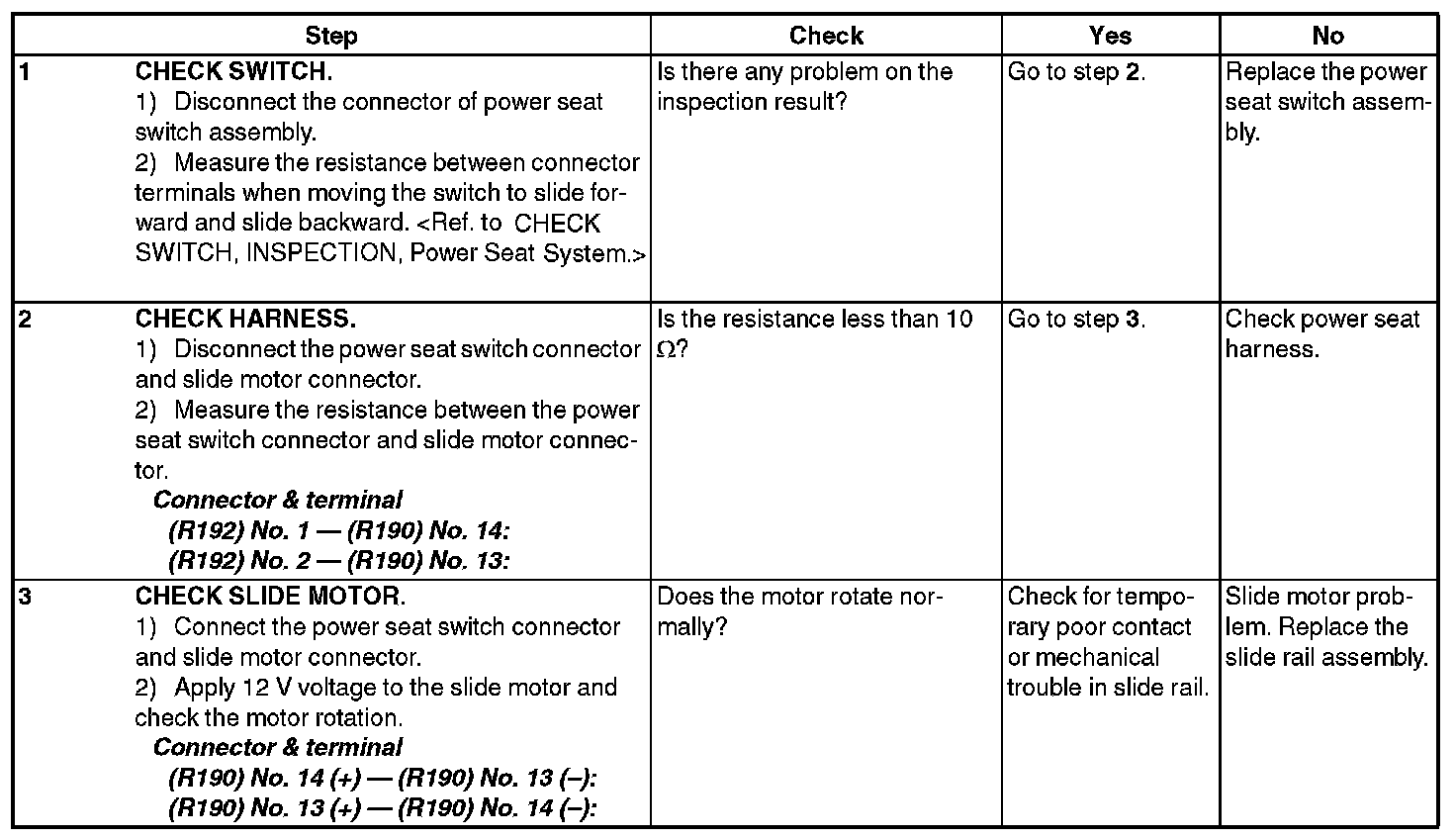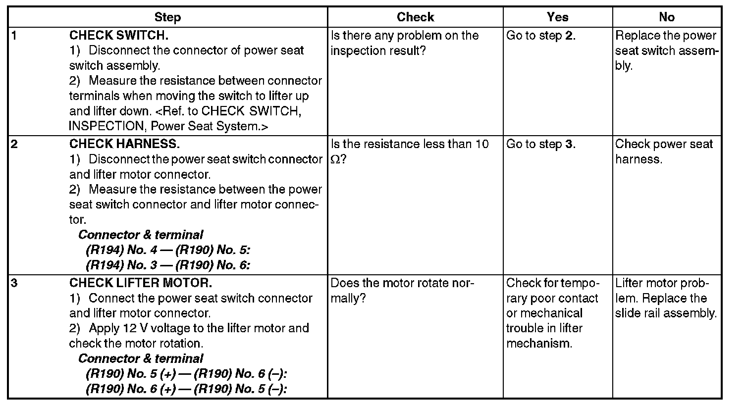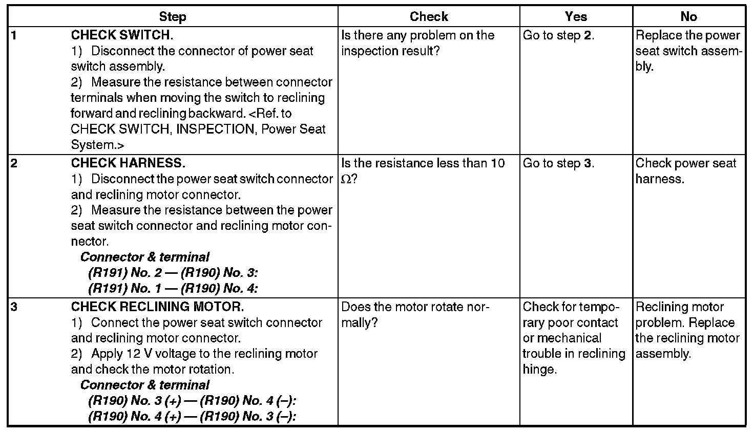 POWER SEAT SYSTEMINSPECTION