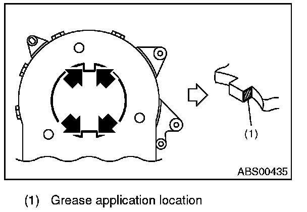 12) Apply the grease provided with the new part on the four locations of the protrusion on the steering angle sensor.