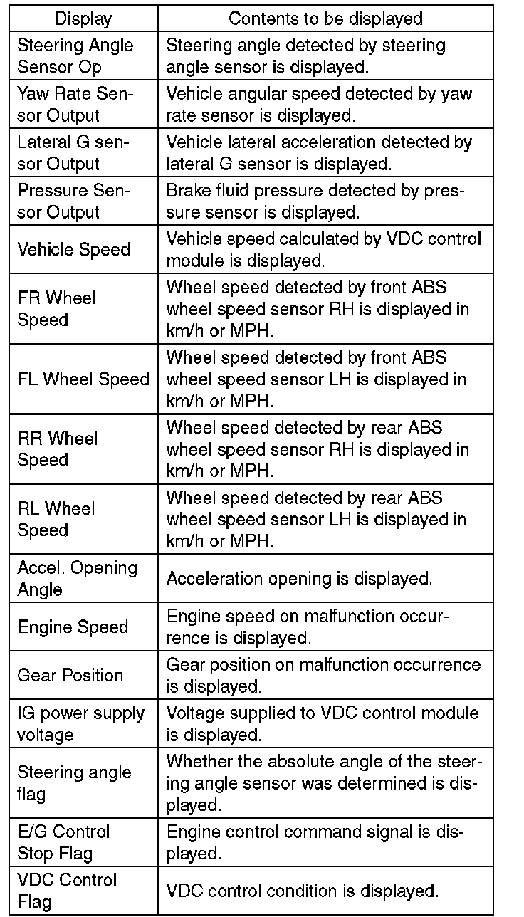 ^ When no data is registered, ABS/EBD/VDC warning light illuminates and the DTC "Parameter selection error" is detected.