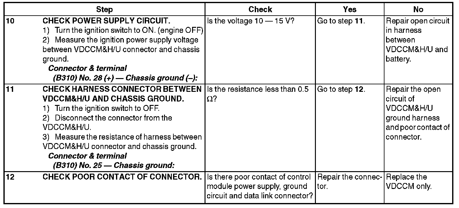 9) If VDC and Subaru Select Monitor cannot communicate, check the communication circuit.