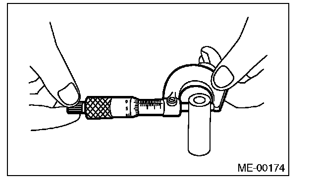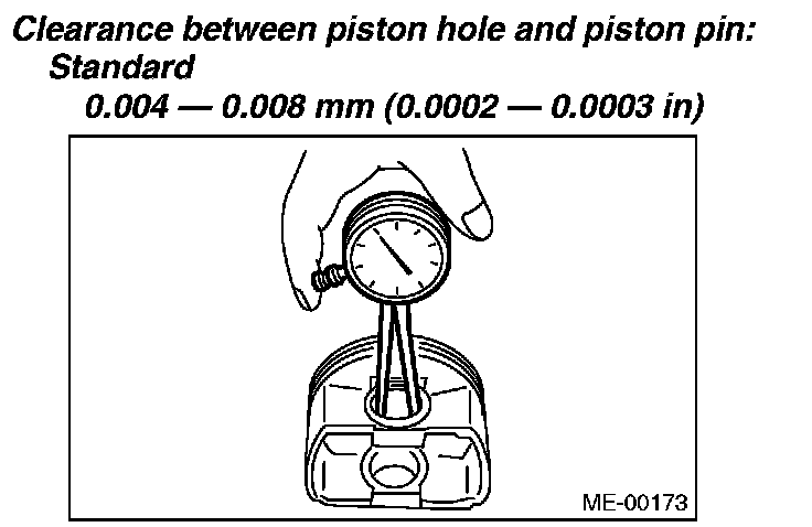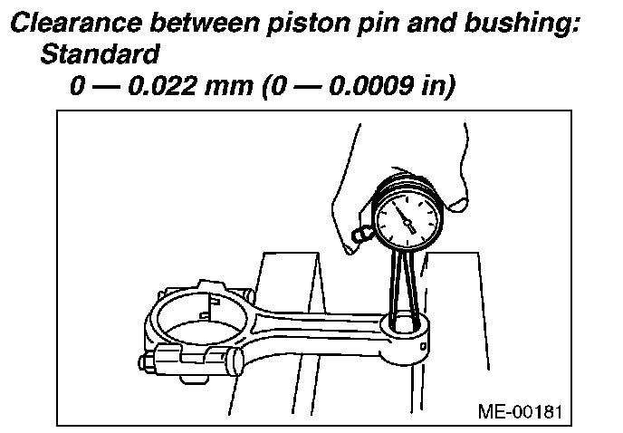 7) Measure the piston pin clearance at connecting rod small end. If the measured value is not within the standard, replace it with a new part.