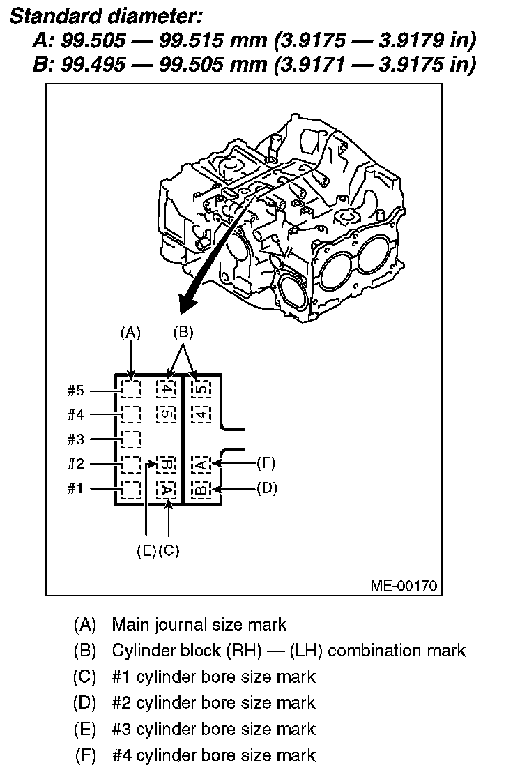 1) The cylinder bore size is stamped on the front upper face of the cylinder block.