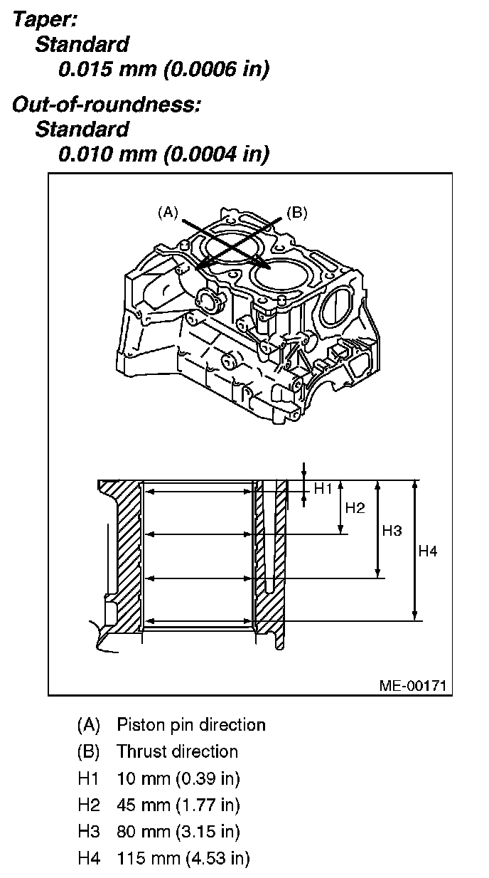 2) If the cylinder inner diameter exceeds the limit after boring and honing, replace the cylinder block.