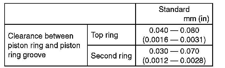 Before measuring the clearance, clean the piston ring groove and piston ring.