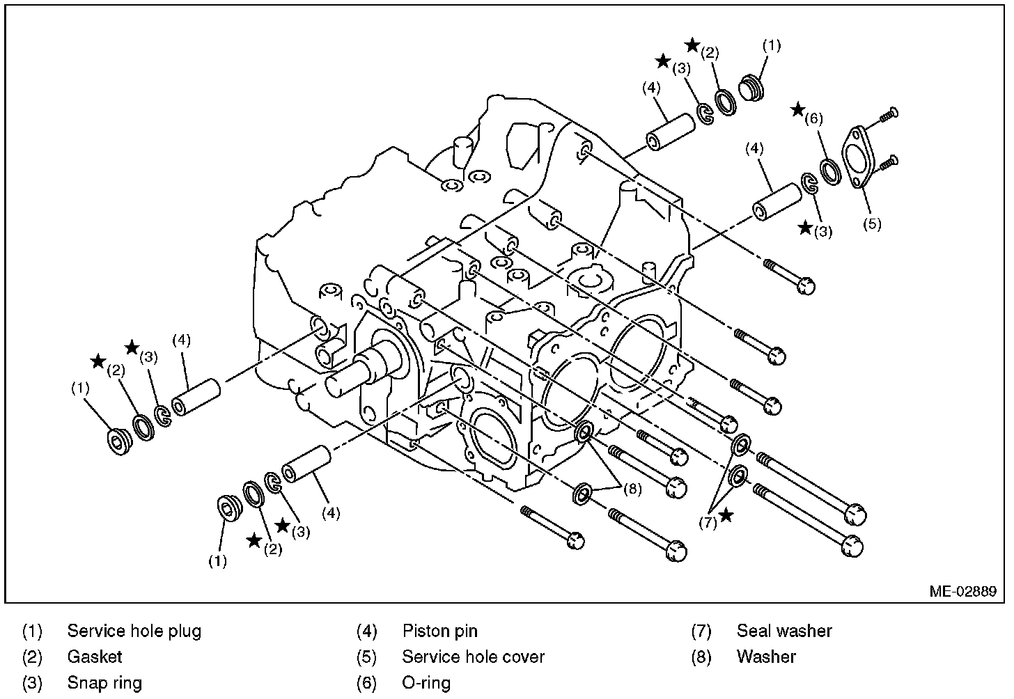5) Check the piston pin snap ring for distortion, cracks and wear.