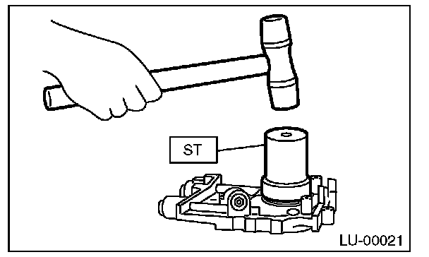 2) Press the bushing with the ST after applying oil on the periphery of new bushing.